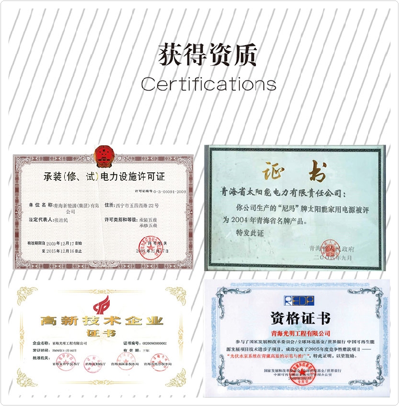 公司先后榮獲“全國專利先進科技研究院”、“全國各族青年團結(jié)進步集體”、“青年文明號”,“青海省模范集體”,“全國教科文衛(wèi)系統(tǒng)先進工會組織”、全省“學習型組織標兵”單位、全國“創(chuàng)新性試點企業(yè)”、連續(xù)三年被中國農(nóng)業(yè)銀行青海分行授予“AAA信用企業(yè)”和“AAA優(yōu)良客戶”等榮譽稱號。公司擁有“尼瑪”牌太陽能。
